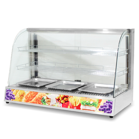 Yüksek hassasiyetli fabrika kaynağı gıda vitrin sıcak gıda ekran Patty isıtıcı cam gıda ısıtıcısı vitrin